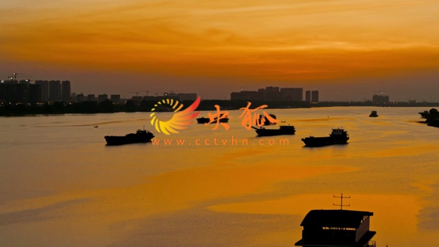 水厂 夕阳 湘江上红色的江面